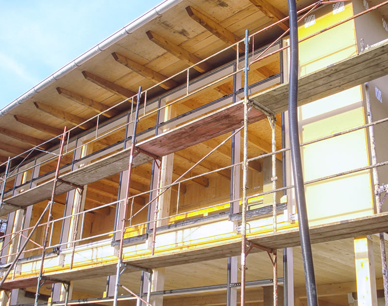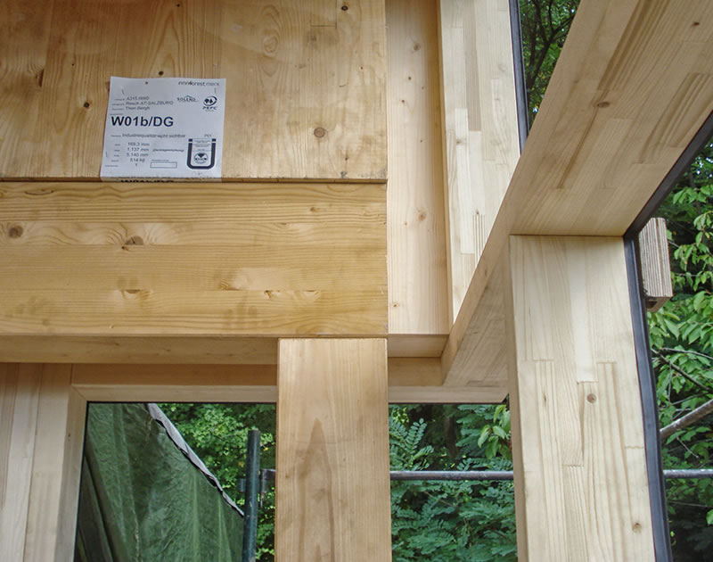 Raico ist unser Profilgeber bei der Pfosten-Riegel Fassade. Diese Fassade besteht aus Leimholzriegeln und Glas. Außen können diese Riegel mit Alu verkleidet werden. Innen kann aus verschiedenen Holzarten gewählt werden.